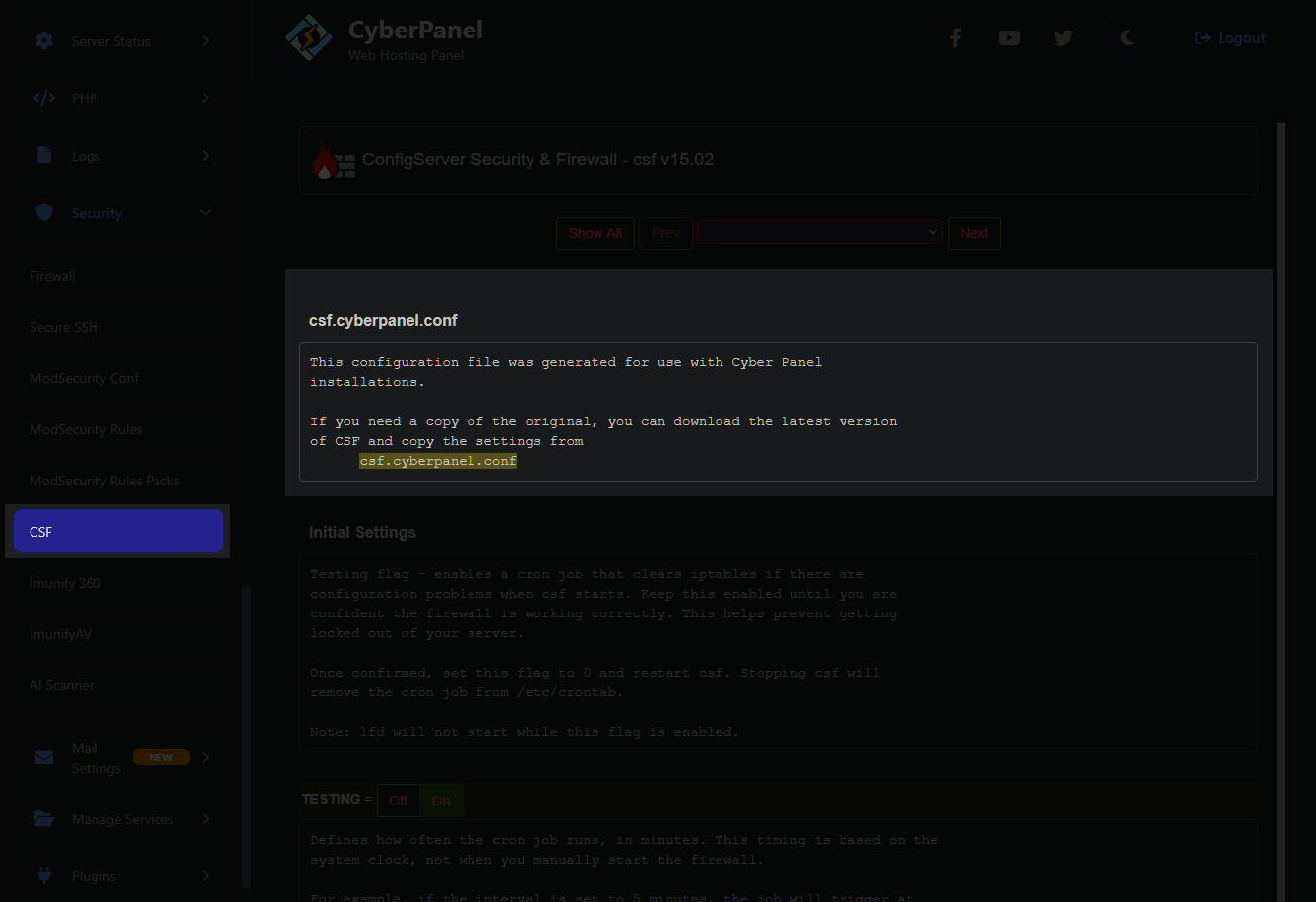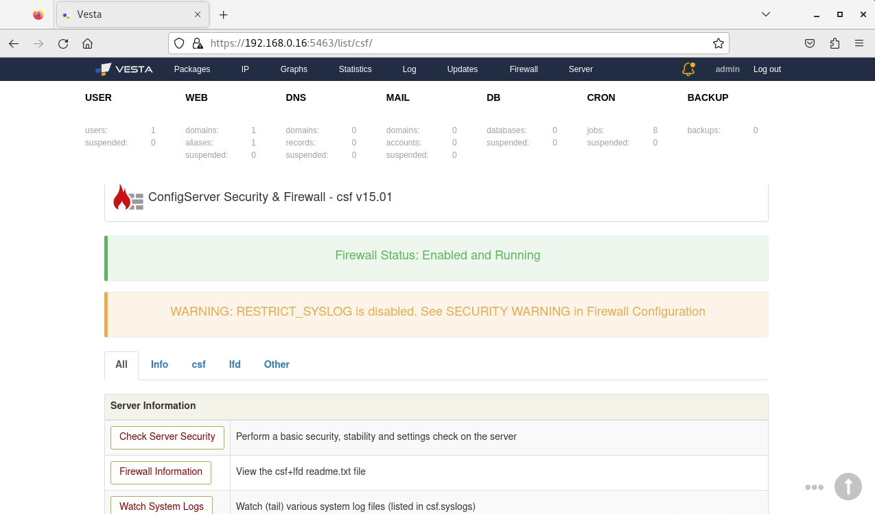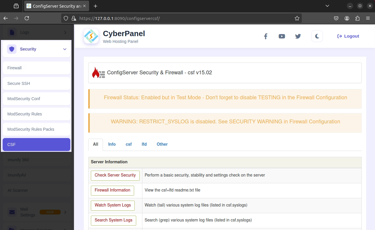 The next release of ConfigServer Security & Firewall (CSF) is here, and I wanted to take a moment to share an update on what’s coming next — including fixes, plans, and our broader direction moving forward. This post will cover integration improvements for both VestaCP and CyberPanel, as well as a look into the ongoing goals behind CSF’s continued progression.