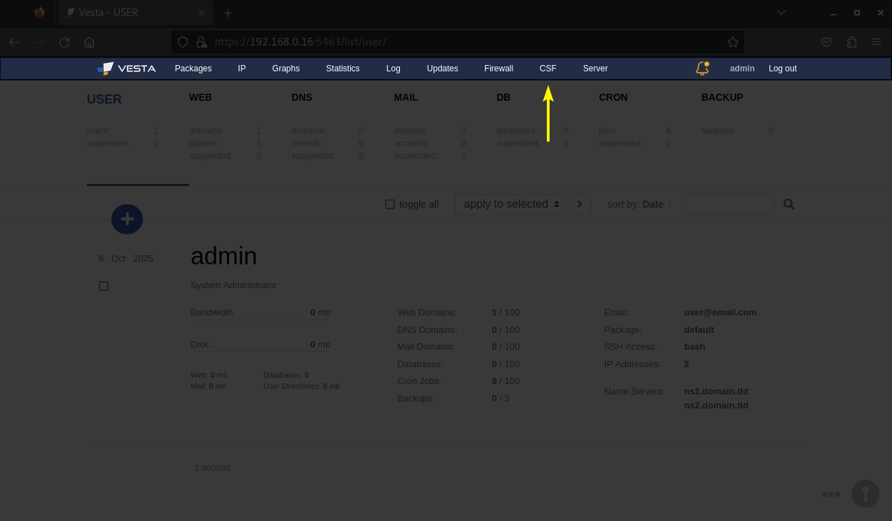 I have re-integrated the header menu into CSF for VestaCP, so you can now jump to other pages from the /list/csf