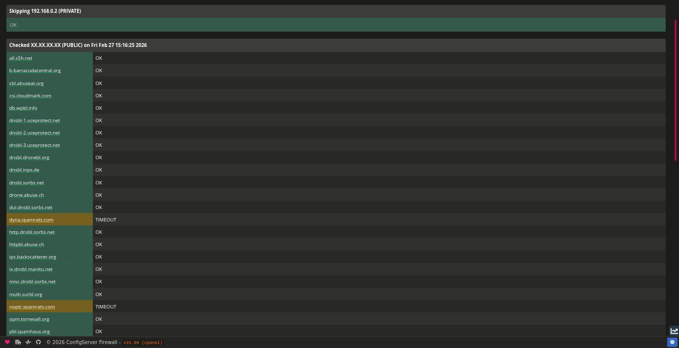 brute-force attacks, port scanning, or botnet behavior. CSF uses RBLs to proactively block or flag suspicious IPs, helping protect